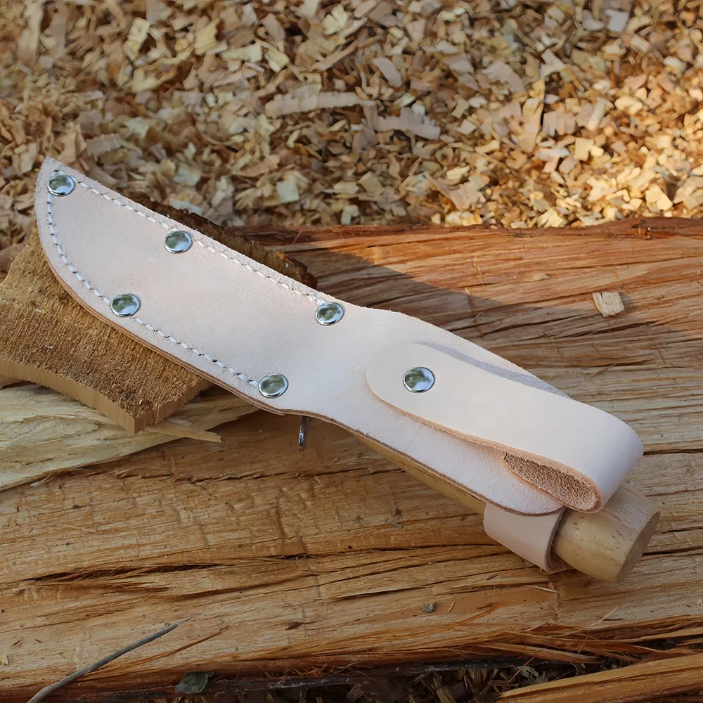 Denne børnevenlige snittekniv er designet som en tryg og funktionel introduktion til knivbrug. Den er ideel som første kniv til børn, der skal lære at snitte under opsyn. Det ergonomiske skaft i bøgetræ ligger godt i små hænder og giver et stabilt greb. Den brede fingerbeskytter (parérplade) reducerer risikoen for, at fingrene glider frem på klingen – en vigtig detalje for nye brugere. Klingen er fremstillet i rustfrit stål og er skarp nok til at skære rent i træ uden at kræve unødig kraft. Det giver bedre kontrol og mindsker risikoen for pludselige, ukontrollerede bevægelser. Kniven leveres med en robust læderskede, så den kan opbevares sikkert efter brug. Velegnet til: Børn og juniorer, der skal lære grundlæggende snittefærdigheder – altid under opsyn af en voksen.